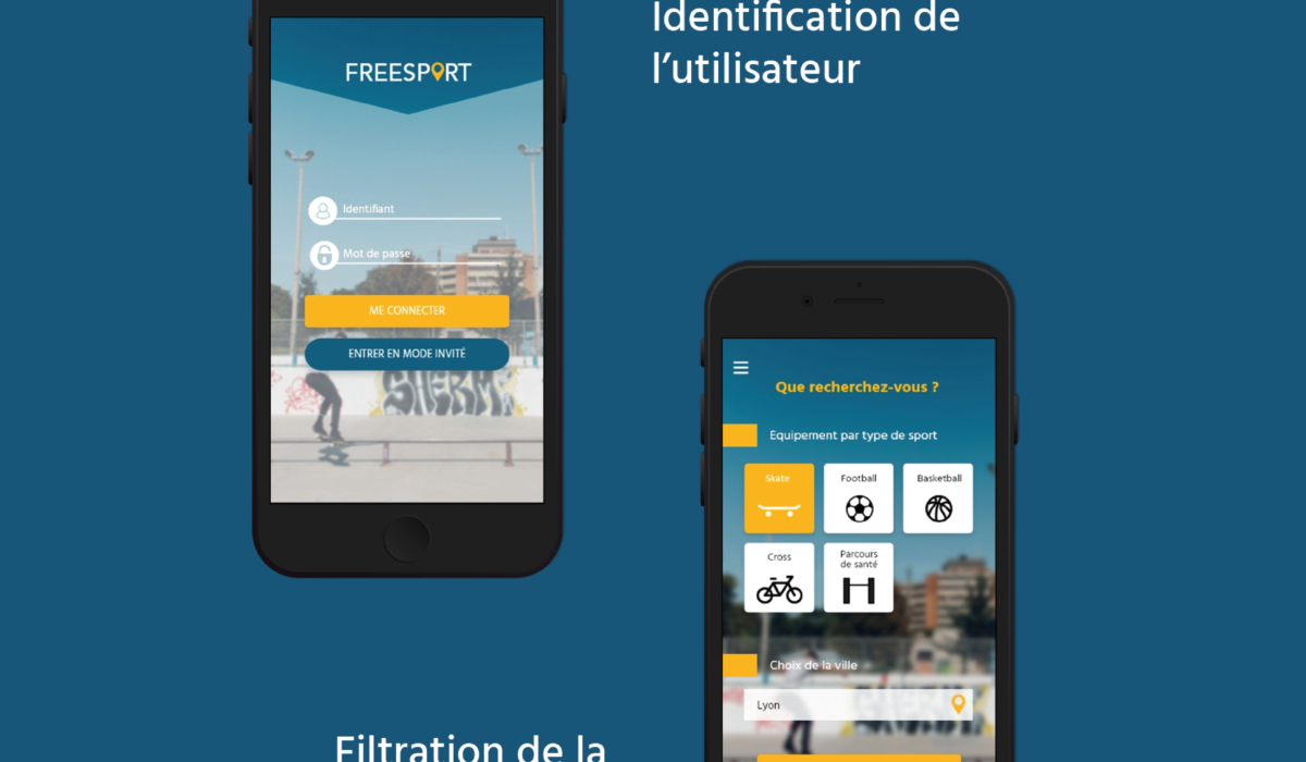 Freesport est une application fictive permettant aux utilisateurs de trouver des infrastructures sportives gratuites (skate parc, terrain de foot…).